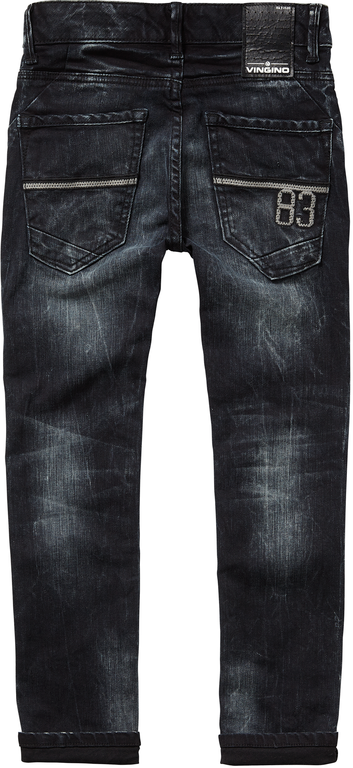 Coole Slim Stretch Jeans von Vingino in angesagter Waschung, schwarz, mit schlankem Bein, super stylische Popo-Taschen, Bundweite innen verstellbar.