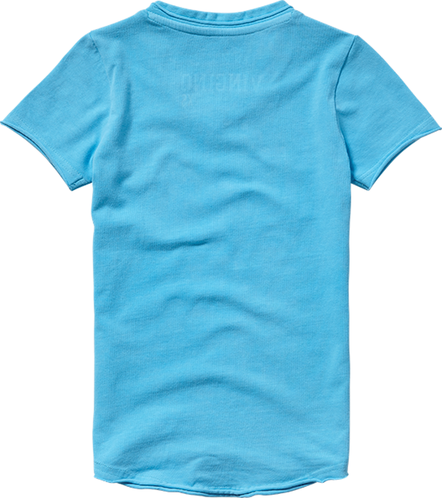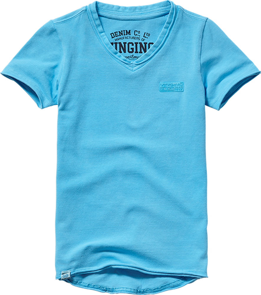 Cooles Basic T-Shirt von Vingino in einem schönen blau. Die offenen Kanten und der V-Ausschnitt geben dem Shirt einen lässigen Look.