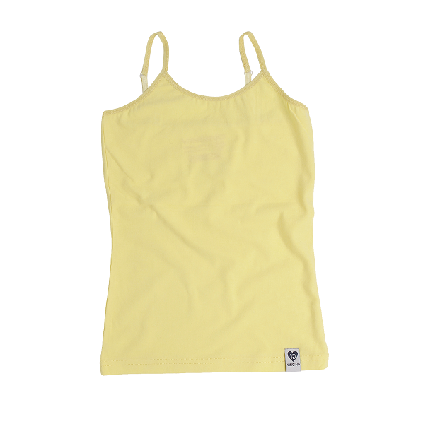 Schönes Top / Unterwäsche von Vingino in gelb mit verstellbaren Trägern und einem Logo-Druck am Rücken und Logo-Label vorne am Bund.