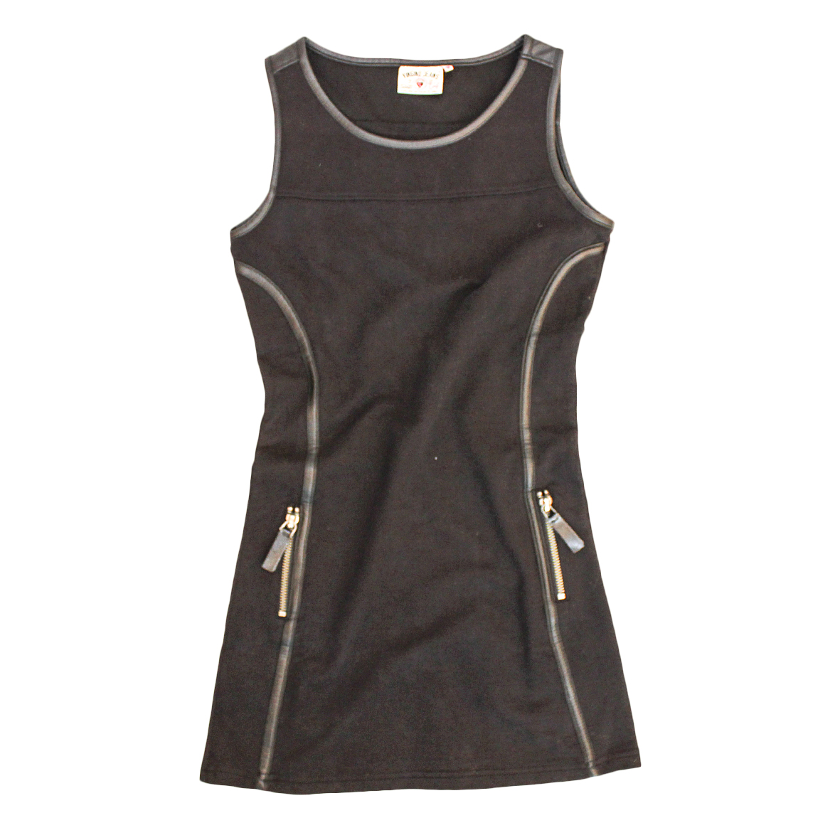 Schickes Kleid von Vingino in schwarz, enganliegender Schnitt, viele schöne Details wie z.B. Kunstleder, Rücken-Print, Zipper.