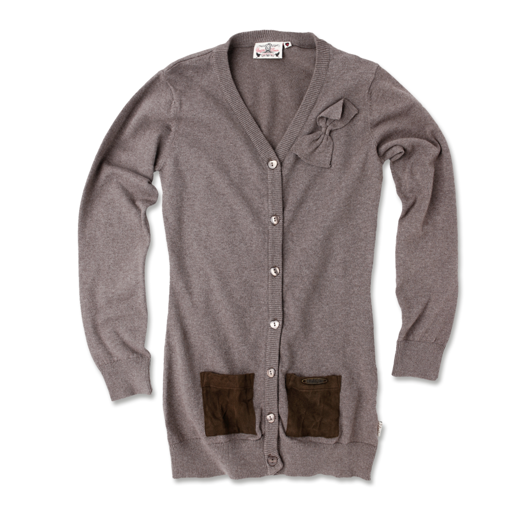Klasse Long-Strickjacke / Cardigan von Vingino in braun zum Knöpfen, vorne zwei aufgesetzte Taschen und Ellbogenpatches in Lederoptik, auf dem Rücken ein großes Print! Sehr angenehmes weiches Material!