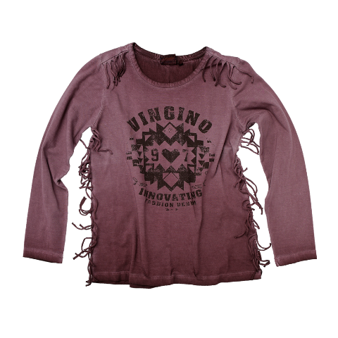Freches Langarm-Shirt von Vingino in purple mit angesagter Waschung, großem Front-Print, eine Kontrastnaht am Rücken und als HIGHLIGHT die Fransen.