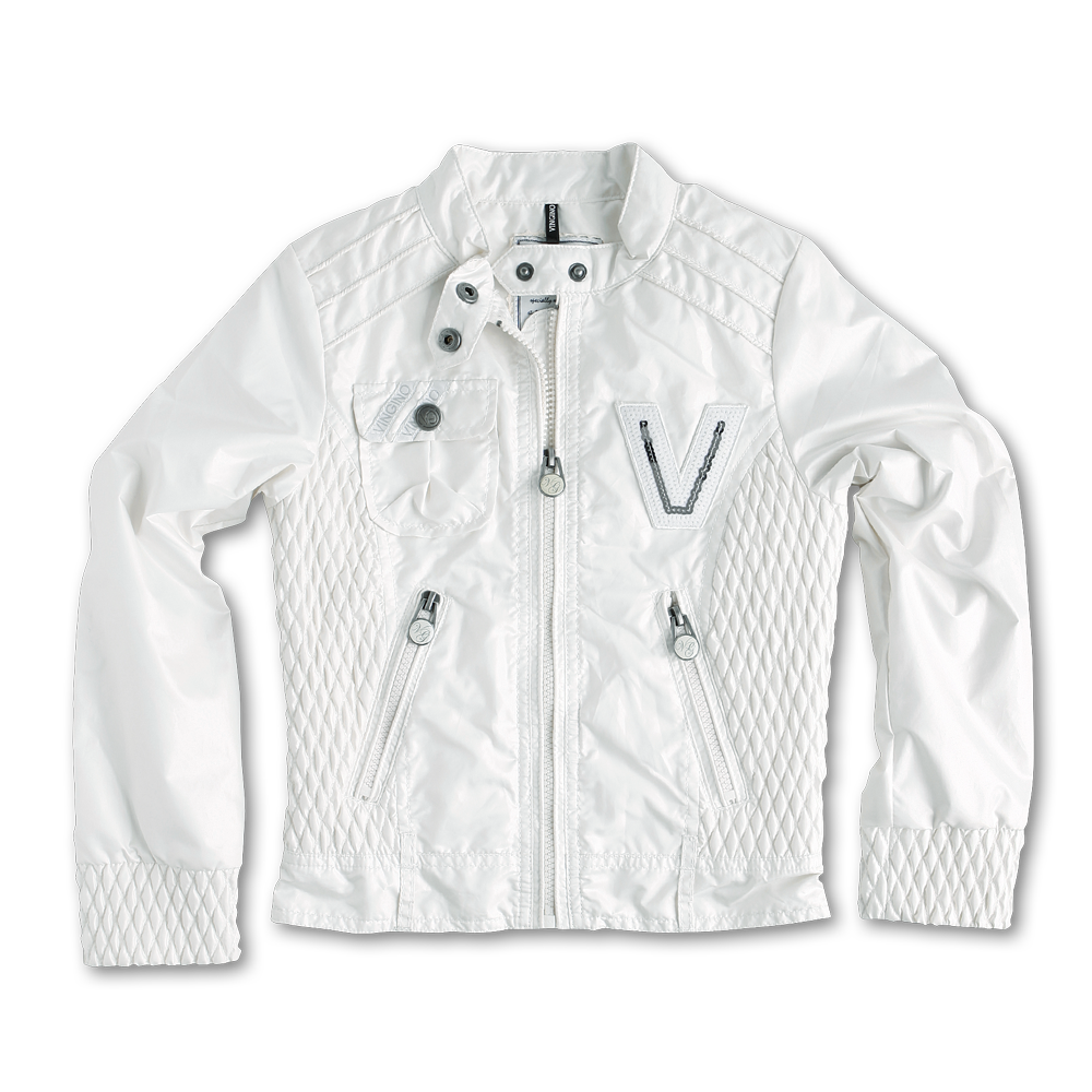 Stylische Jacke von Vingino in coolem Look in offwhite, seitliche Absteppungen, Pailetten-Applikationen, 2 Taschen mit Reissverschluss, mit durchgehendem Reissverschluss,
