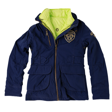 Super 2 in 1 Jacke/Übergangsjacke von Vingino in blau, die abnehmbare Weste innen ist grün. Die Jacke hat einen Stehkragen, einen Reißverschluss zum schliessen, zwei aufgesetzte Taschen mit Klettverschluss, eine schöne leicht taillierte Form, ist super schön und aufwendig verarbeitet und sehr schön bis ins Detail - tolle Logo-Applikation an Brust und Ärmel. Jede Jacke auch einzeln tragbar.