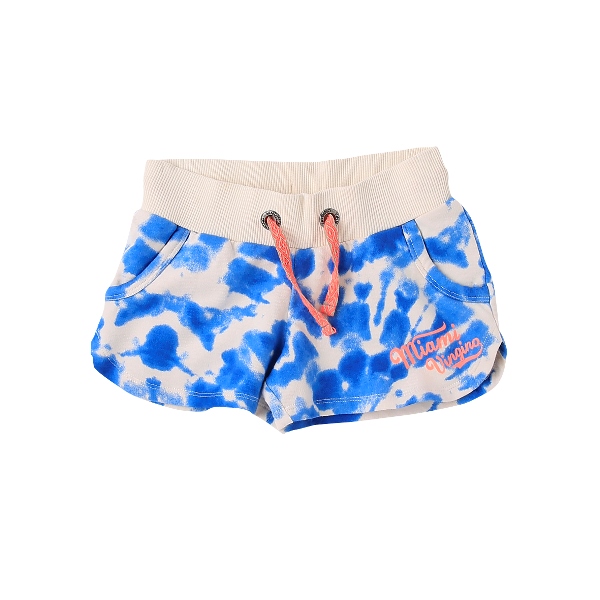 Hammer Sweat-Short von Vingino im Splashed-Look ("bespritzt/Klecks") in blau mit zwei Einschub-Taschen und einem kleineren Logo-Print vorne; ein breiter Jersey Bund mit Zugband.