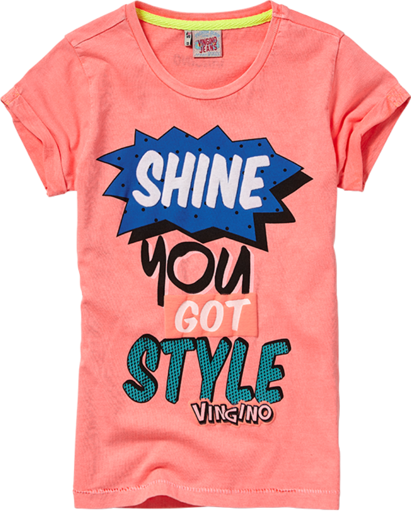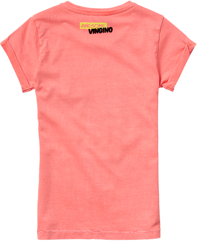 Krasses T-Shirt von Vingino in neon pink, vorne im Comic-Style/Print.