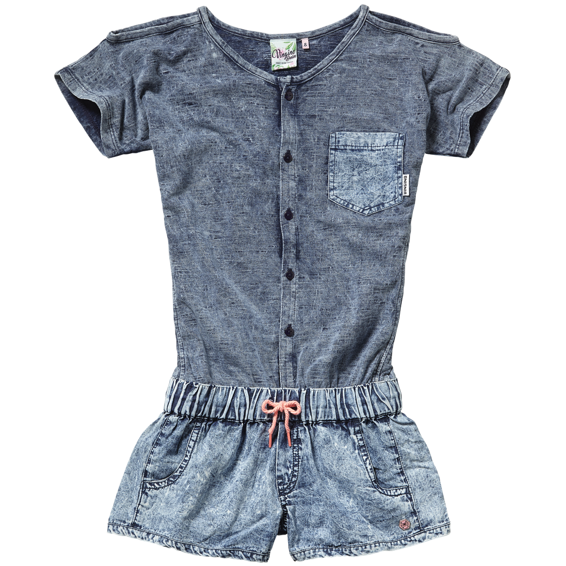 Attraktiver kurzer Jumpsuit von Vingino in tollem denim, Taille mit Tunnelzugbund, "Schulterfrei".