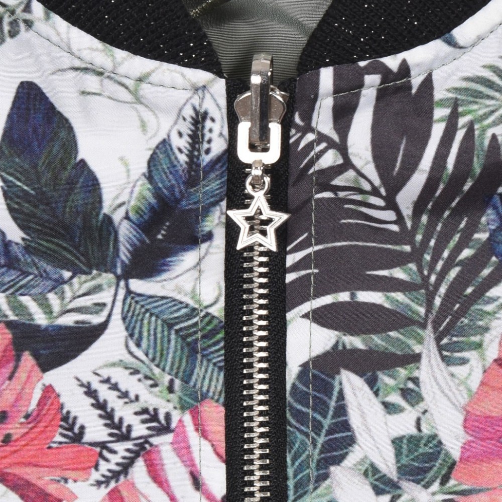 Die klassische Bomberjacke bekommt ein stilvolles Update, an diesem schönen Exemplar. Glitzer am Kragen und Bündchen, durchgehender Reißverschluss. Diese Jacke passt perfekt zu Denim und auch Edel.