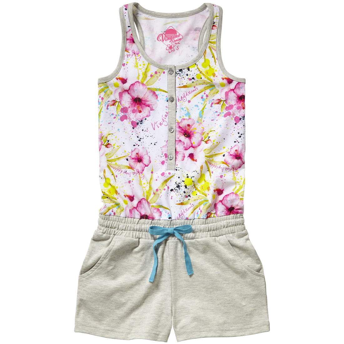 Sleepwear / Schlafanzug / Pyjama / Jumpsuit von Vingino. Ein Traum. Das Oberteil ist in einer Top-Form mit Blumen allover, der Hosenteil ist uni hellgrau, mit Taillenzugbund.