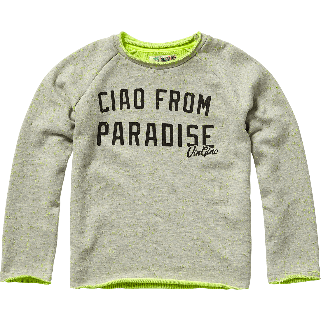 Hier ein Sweater von Vingino im lässigen sportiven Style, gerollte Kanten, zweifarbig, innen neon.