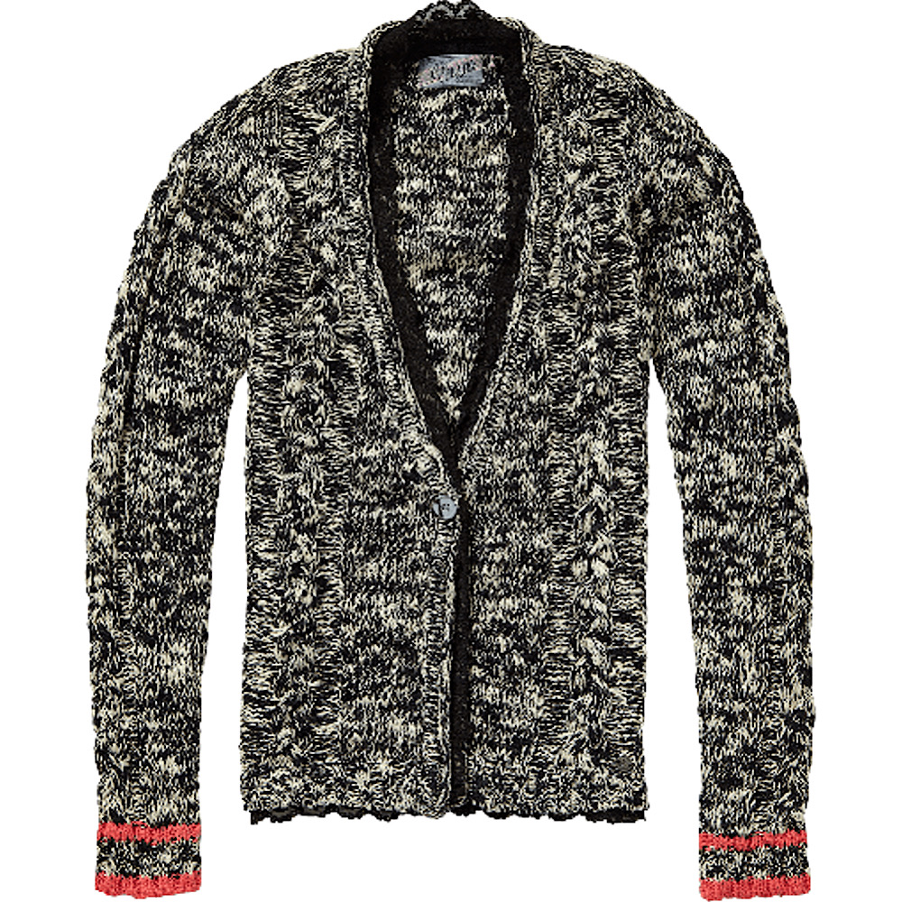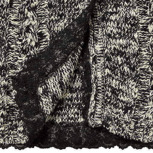 Bezaubernde Strickjacke/Cardigan von Vingino in schwarz/weiß, rundherum mit schwarzer Spitze verziert, an den Armbündchen mit Kontraststreifen - vorne mit einem Knopf.