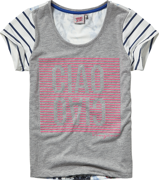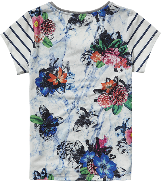 Total angesagtes T-Shirt von Vingino. Die Front ist grey mele und wird mit einem coolen Streifen-Druck verziert, die Ärmel sind im Streifen-Design und der Rücken zeigt ein tolles farbiges Blumenmotiv - ein Traum.