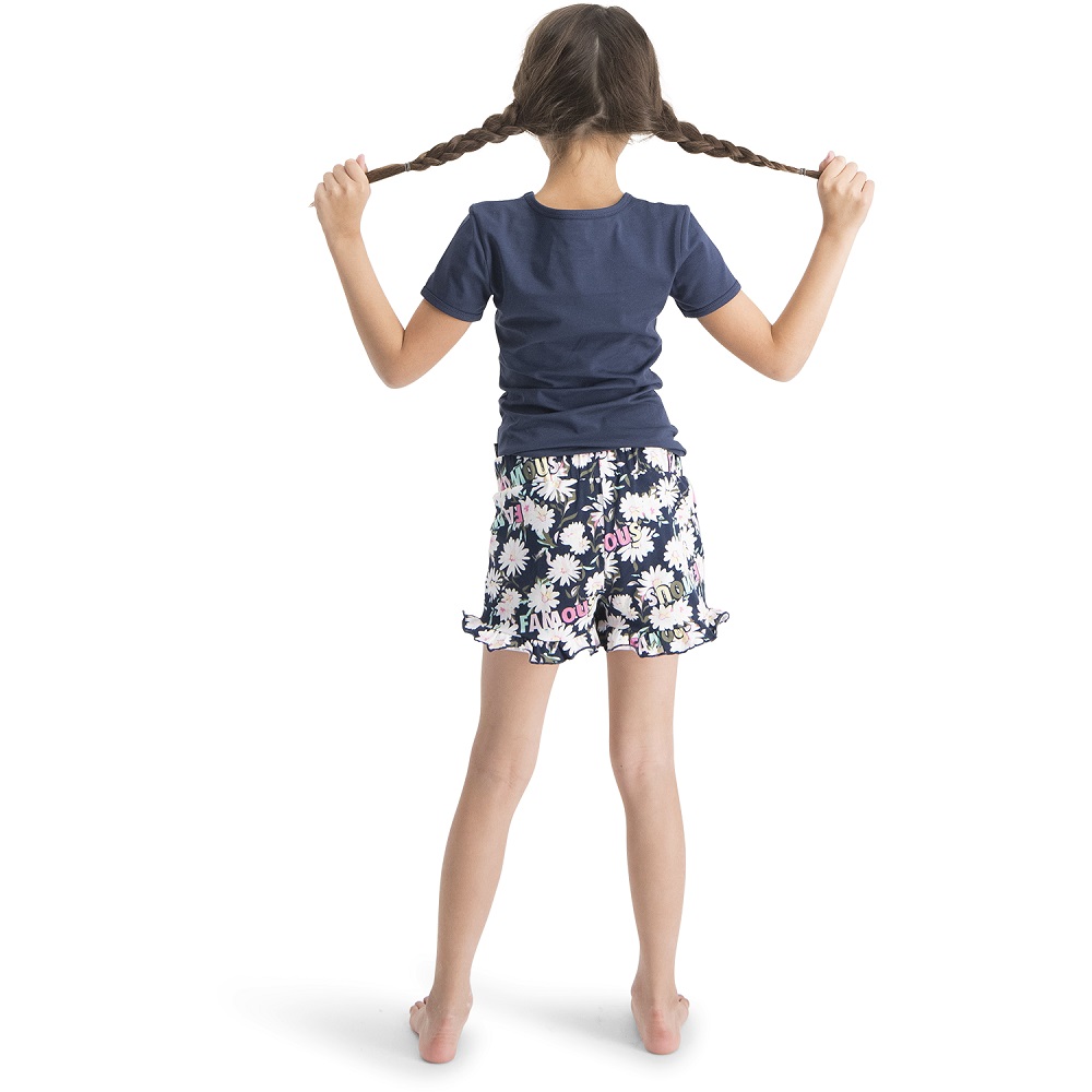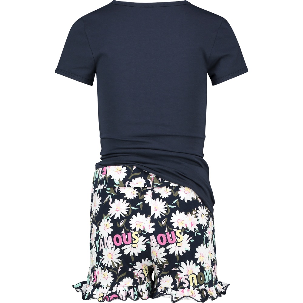 Sleepwear / Schlafanzug / Pyjama von Vingino. Superschön. Das Oberteil ist ein schönes T-Shirt mit Schrift-Print, die kurze Hose hat ein Blumen-Muster und einen Rüschenabschluss an den Beinen - mit Gummizugbund.