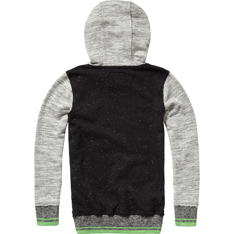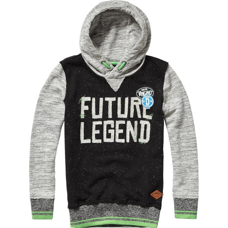 Klasse Kapuzen-Sweat-Shirt/Pullover von Vingino in schwarz und grau melange, Sweat gekoppelt mit cooler Applikation und neon Details. Elastische Ärmelbündchen.