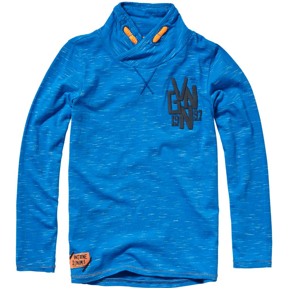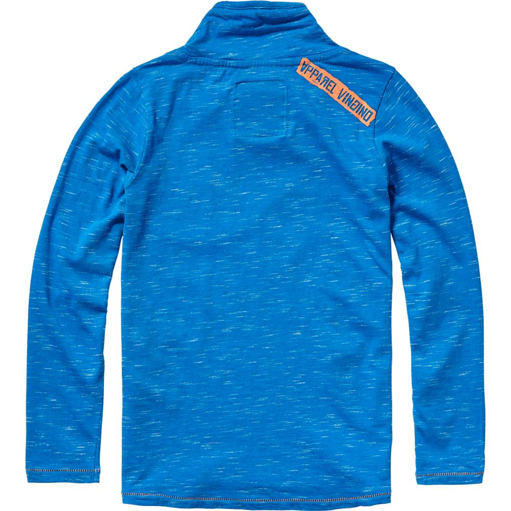 Sehr schönes Langarm-Shirt von Vingino in blau meliert mit dezentem Kragen, Kontrastnähten und Neon-Details.