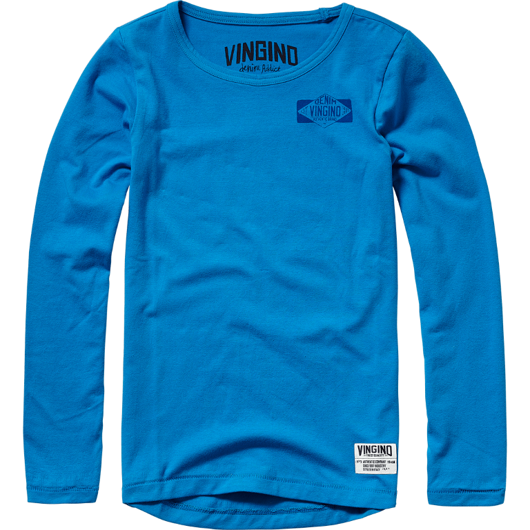 Schönes Basic Langarm-Shirt/Longsleeve von Vingino in blau mit Rundhals-Ausschnitt und mit kleinem Logo-Print vorne.