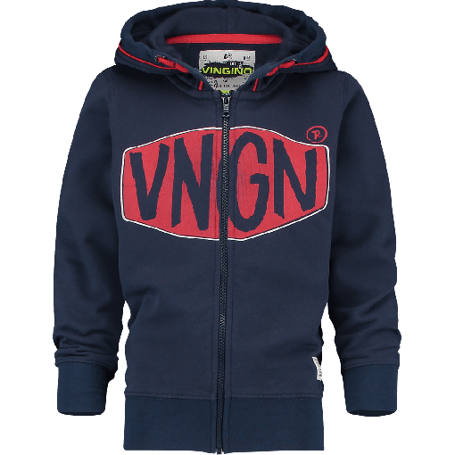 Angesagte Kapuzen-Sweat-Jacke in dunkelblau von Vingino mit Logo-Front-Print.