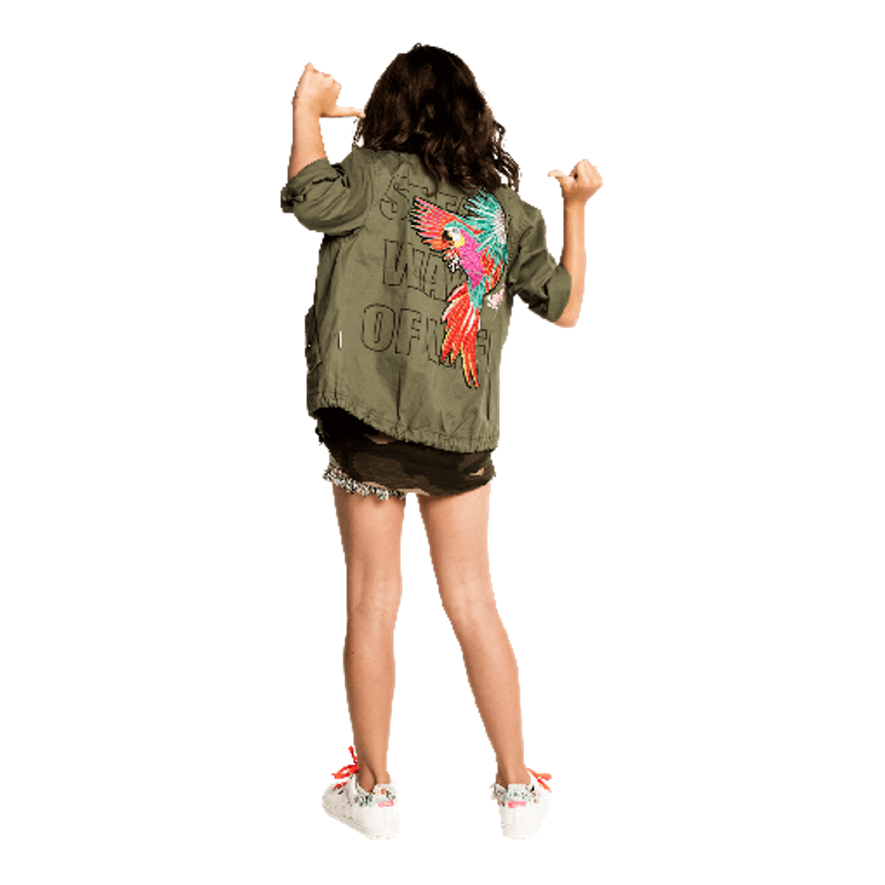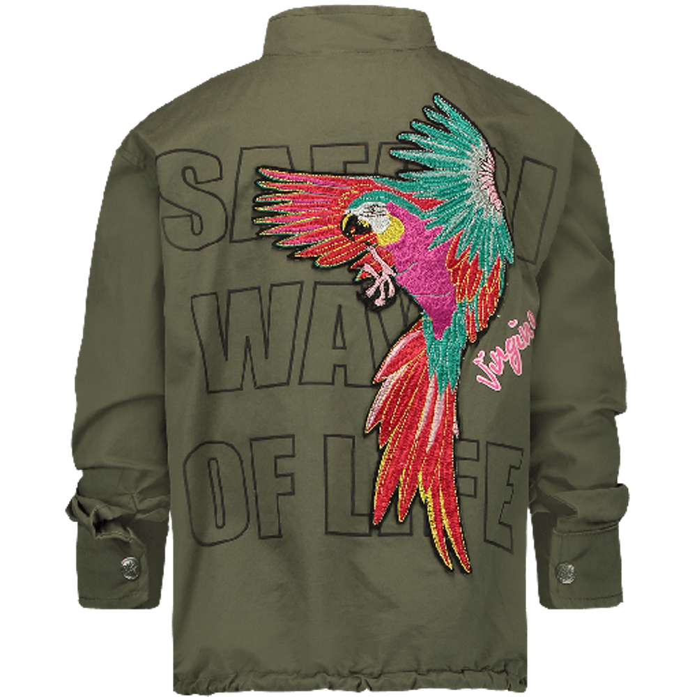 Diese supercoole Jacke von Vingino aus der Spring/Summer-Kollektion zieht alle Blicke auf sich. Unserer Meinung nach darf diese Jacke auf keinen Fall in deinem Kleiderschrank fehlen! Die moosgrüne Farbe in Kombination mit dem großen Papagei-Patch an der Rückseite schafft im Handumdrehen den perfekten Safari-Look. Durch die knalligen Farben des Papageis wirkt die Jacke besonders fröhlich. Die Jacke ist aus reinem Baumwollmaterial und sitzt herrlich luftig.