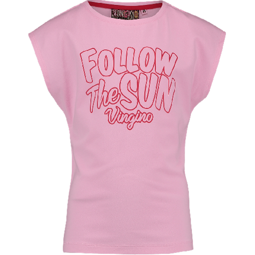 Schönes T-Shirt / Top von Vingino in candy pink mit "Follow the sun"-Print auf der Front und Logo-Print auf der Rückseite.