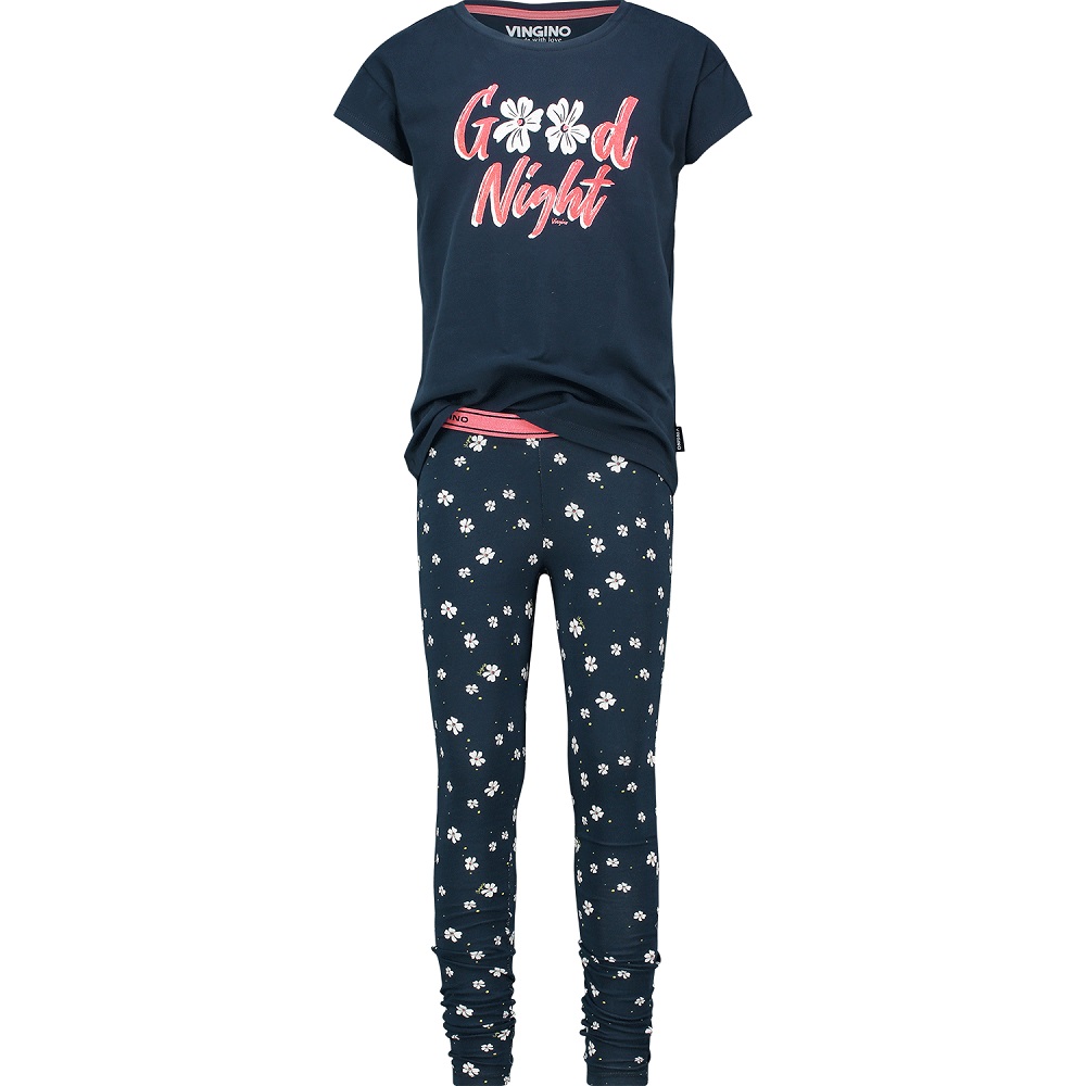 Sleepwear / Schlafanzug / Pyjama von Vingino. Superschön. Das Oberteil ist ein schönes T-Shirt mit Schrift-Print, die Hose hat ein Blumen-Muster - mit Gummizugbund.
