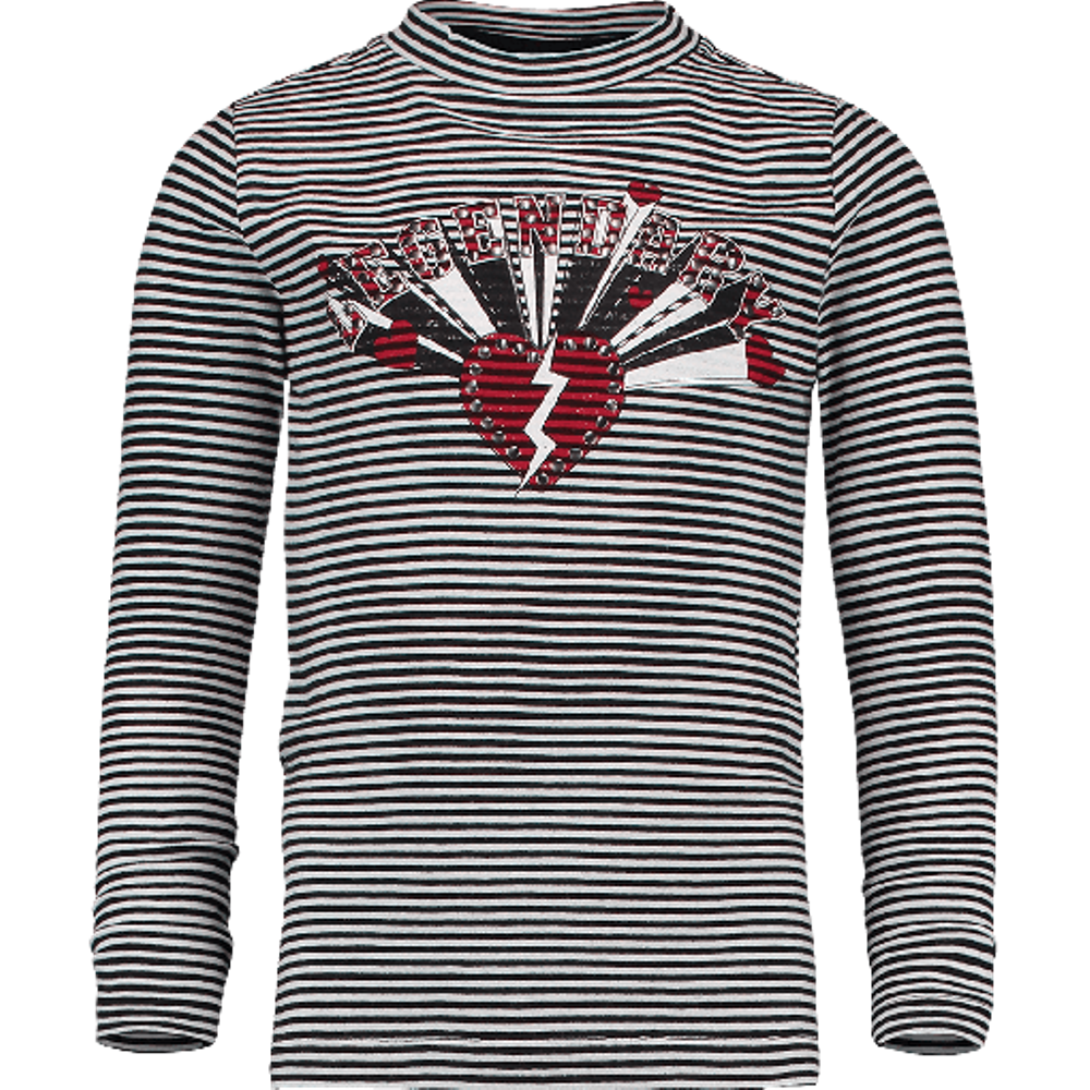 Strahle in diesem gestreiften Langarmshirt von Vingino aus der Herbst-/Winterkollektion. Durch die langen Ärmel und den kleinen Stehkragen eignet sich das Shirt perfekt für den Herbst. Dank des Baumwollmaterials fühlt es sich auf der Haut wunderbar weich an. Hightlight ist außerdem noch der verzierte Frontbereich.