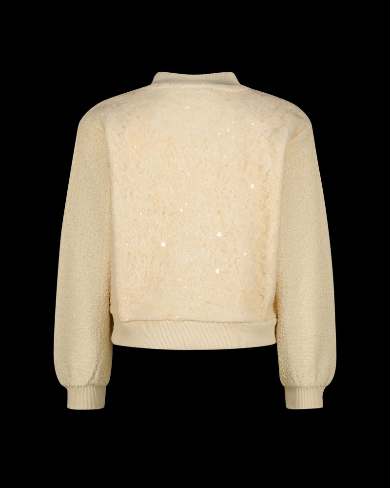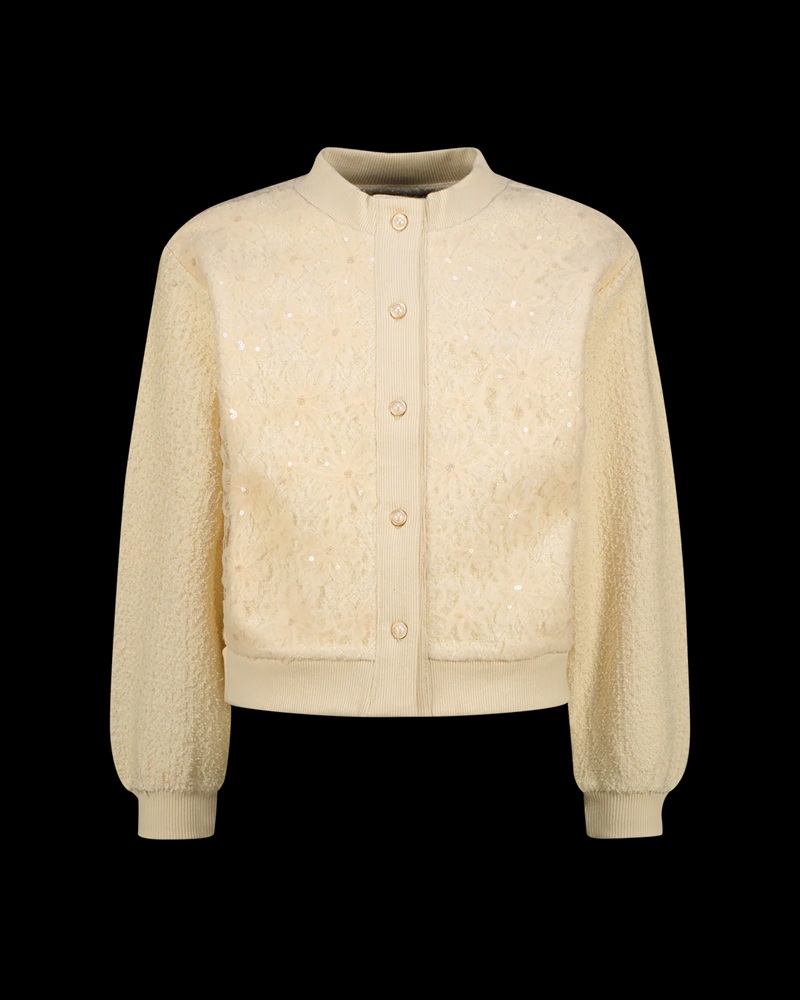 Wunderschöner Cardigan von Vingino mit superschönen Details wie den Pailletten und der Blumen Spitze und natürlich den besonderen Knöpfen.