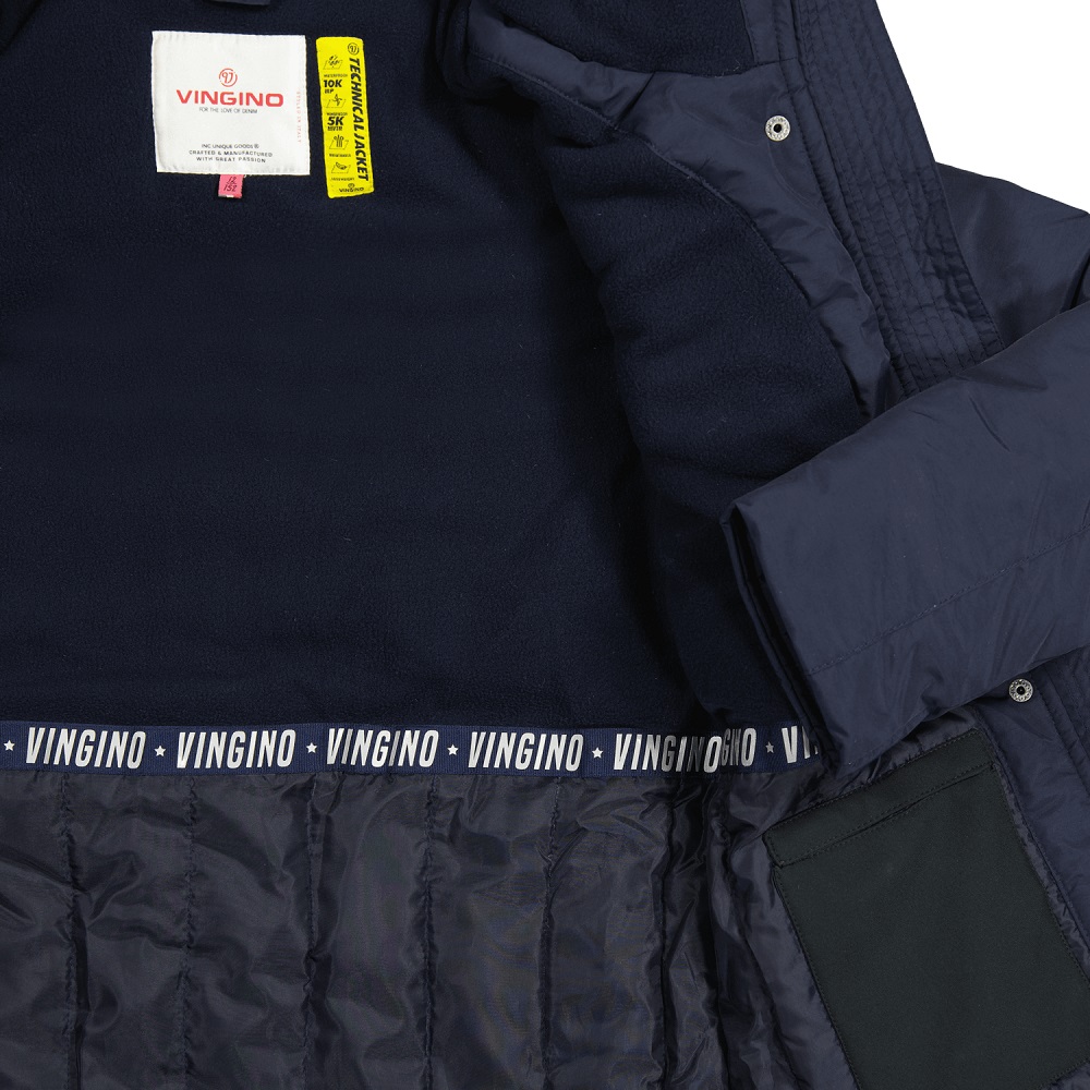 Super Winter-Jacke von Vingino in midnight blue mit Kapuze und verdecktem Reißverschluss.