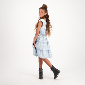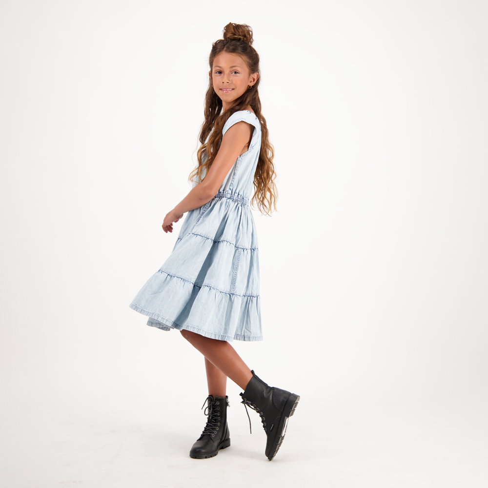 Superschönes Kurzarm-Kleid von Vingino mit elstischem Taillenbund und schwingendem in Stufen gelegten Rockteil.
