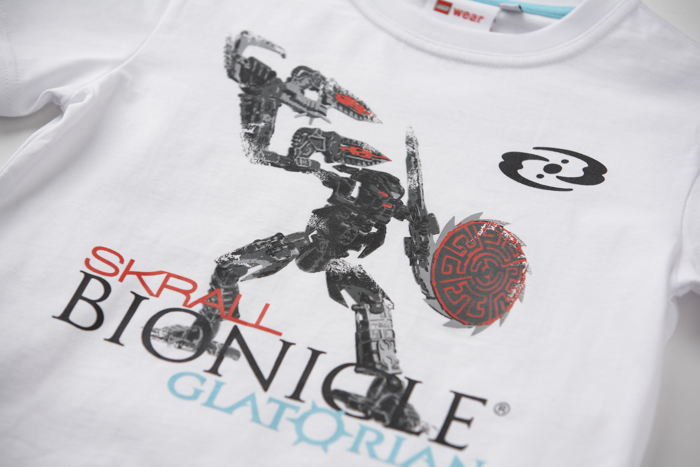 Tolles Kinder T-Shirt von LEGO WEAR mit coolem Bionicle Frontprint, großer "SKRALL Bionicle Glatorian" Druck vorne, aus weicher Baumwolle, hochwertige