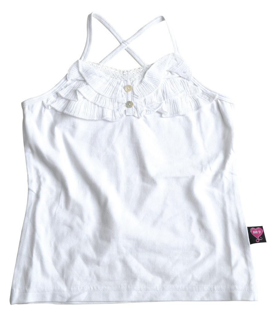 Bezaubernd schönes Träger-Top mit Knopfleiste und Rüschen im Brustbereich, wunderschön verarbeitet aus Baumwoll-Jersey; zauberhaft in Kombi mit den Röcken von Mim-Pi!