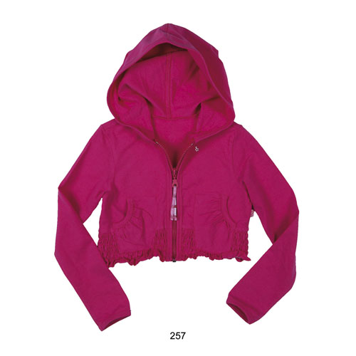 Schöner Mim-Pi Basic-Kapuzen-Cardigan in pink mit durchgehendem Reissverschluss, zwei Taschen, gesmoktem Bundabschluss.