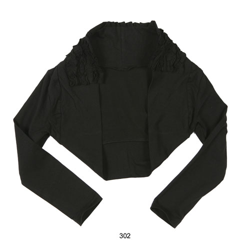 Reizender Mim-Pi Bolero-Jacke in schwarz aus weichem Baumwoll-Jersey, hübesche Rüschen am Halsausschnitt. Passt perfekt über die Mim-Pi Shirts!