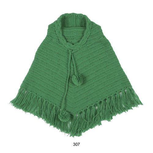 Schöner Häcker-Poncho von Mim-Pi in grün mit Rollkragen und langen Fransen.