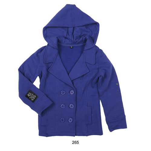 Frecher Mim-Pi Sweat-Kapuzen-Blazer in lavendel, zwei Eingriffstaschen, doppelreihige Knopfleiste.
