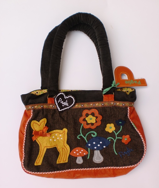 Hübsche Henkel Tasche von Paglie mit Reh-Applikation und Blumen, mit Reißverschluss.